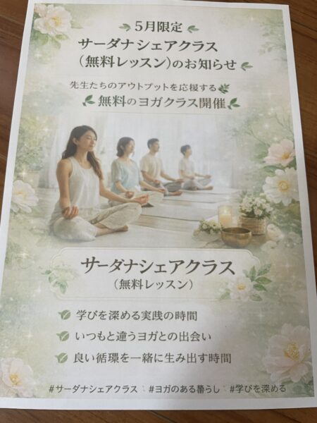 5月限定|サーダナシェアクラス(無料レッスン)のお知らせ